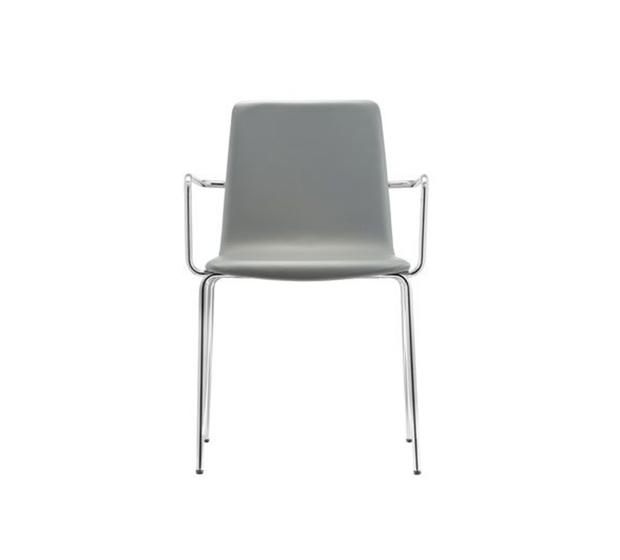 Armchair. Upholstered seat and back, chromed or powder coated round steel tub frame.