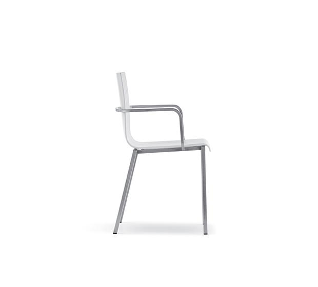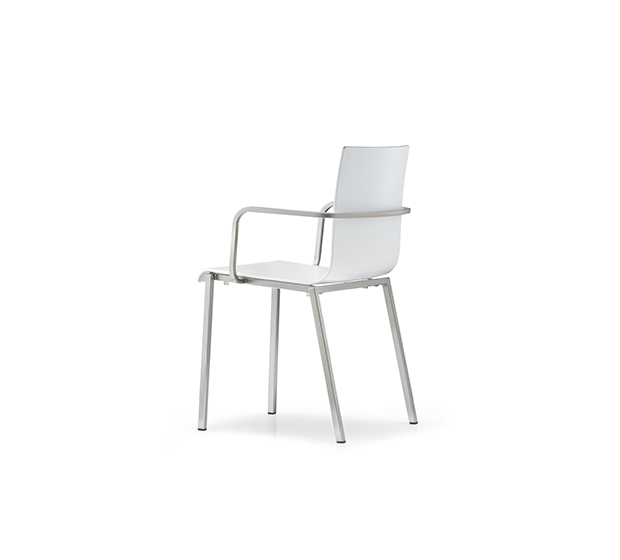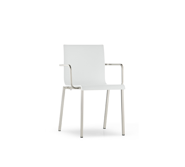Stackable armchair. Technopolymer seat and back, chromed, satinized or powder coated square steel tub frame.
