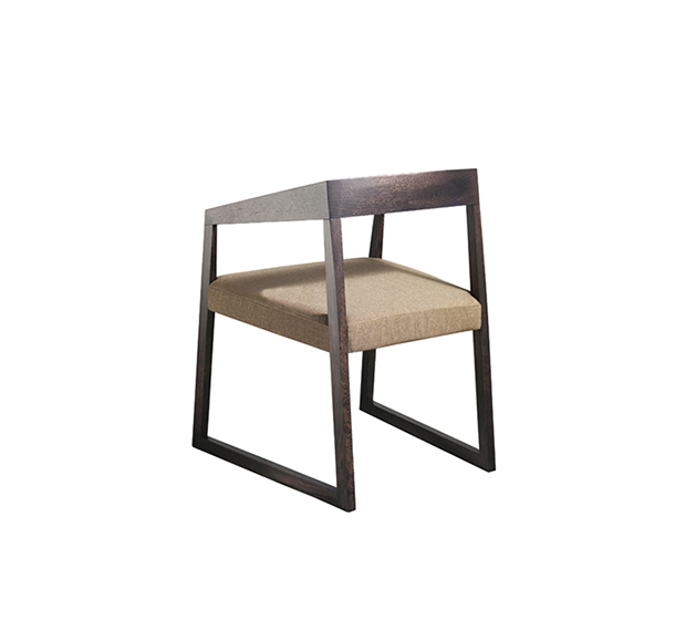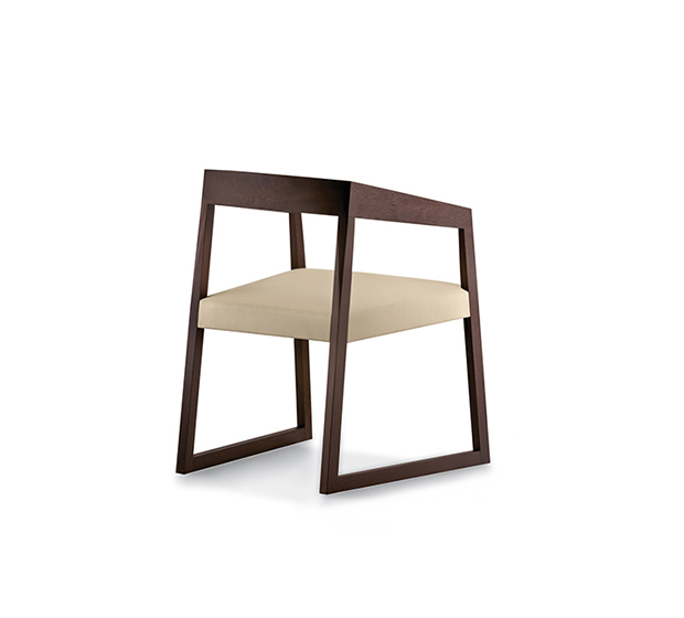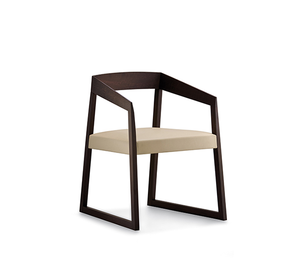 Armchair with sled base. Upholstered seat, frame entirely made of solid oak wood.