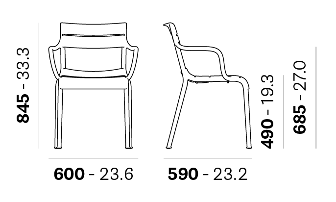 Stackable armchair. Made entirely of polypropylene. Suitable for outdoor use. Available in recycled polypropylene (RG).