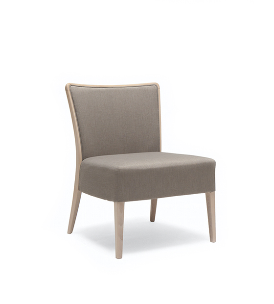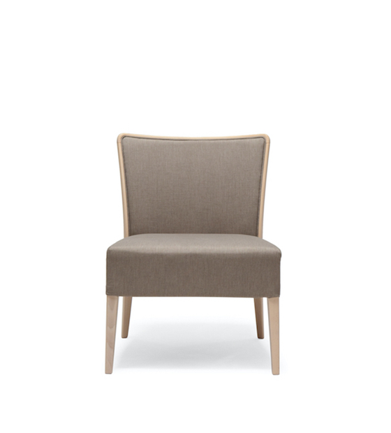 The Nob 228 is a lounge chair with upholstered seat and back and beech wood frame.