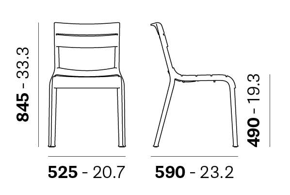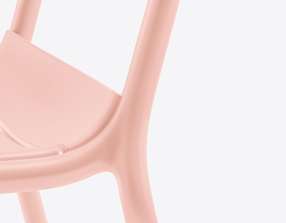 Stackable side chair. Made entirely of polypropylene. Suitable for outdoor use. Available in recycled polypropylene (RG).