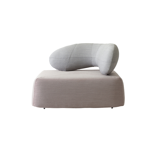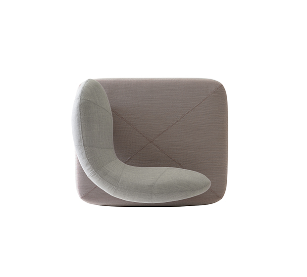 Lounge seat. Entirely upholstered, lacquered aluminum feet.
