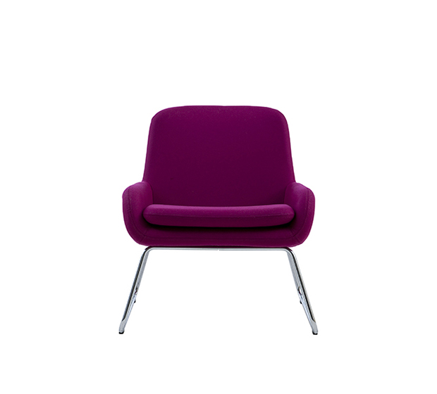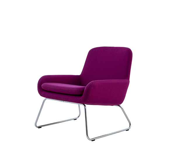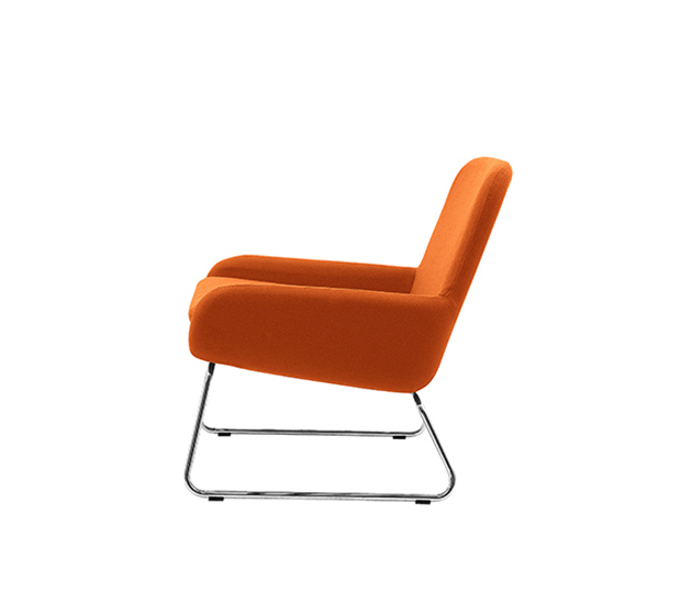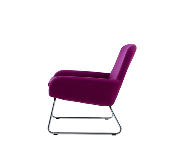 Lounge armchair. Upholstered seat and back, chromed round steel tub frame.