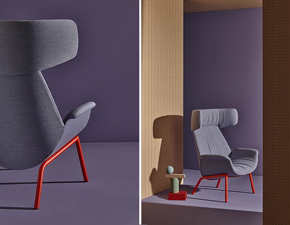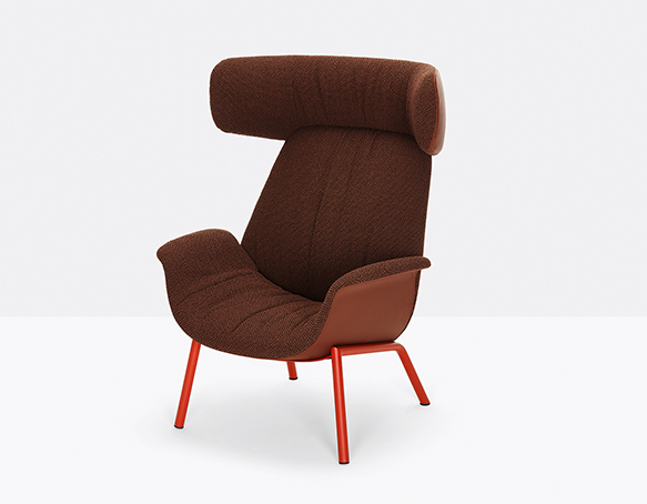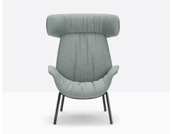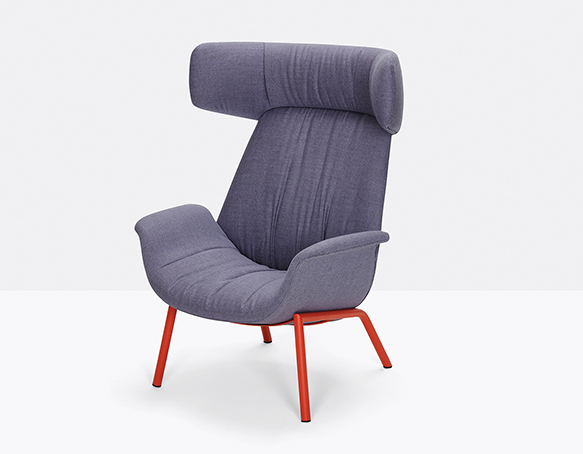 Armchair with rigid polyurethane frame and upholstered with flexible polyurethane foam. Steel rod frame.