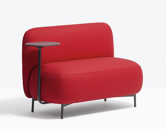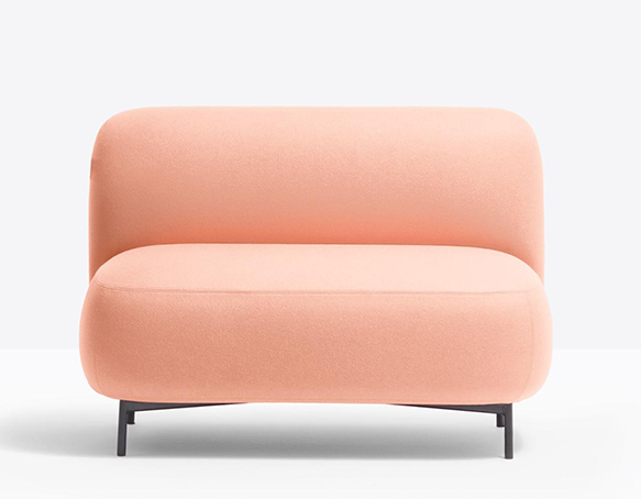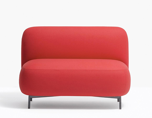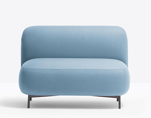 Upholstered two-seater lounge sofa. Aluminium base. Table not included.