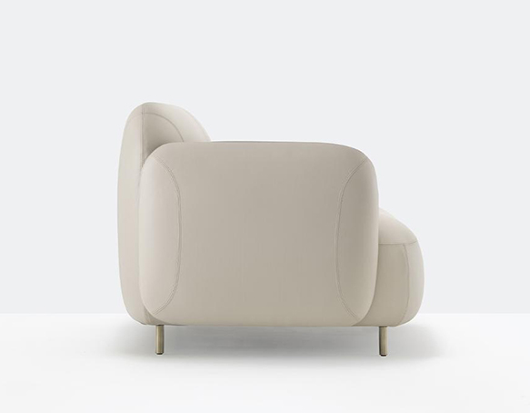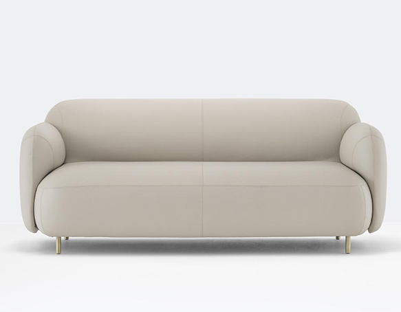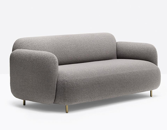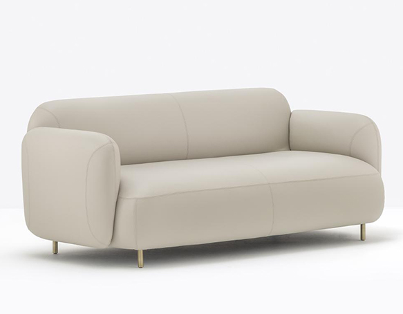 Upholstered two-seater sofa. Aluminium base. Table not included.