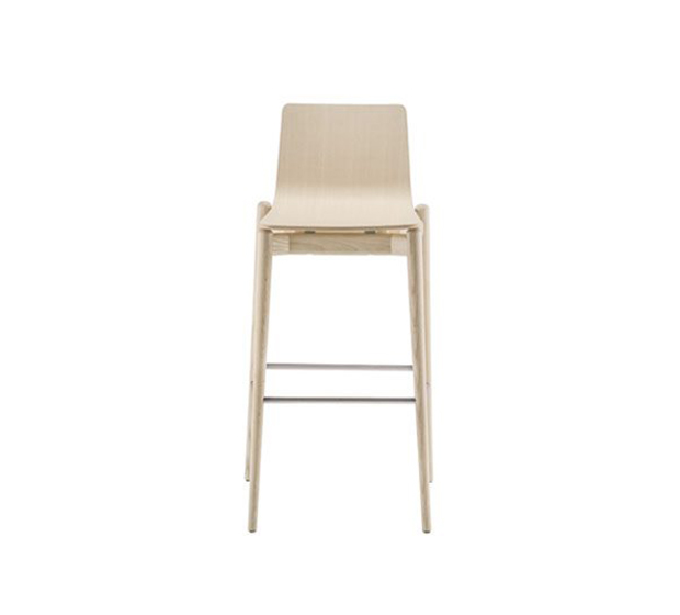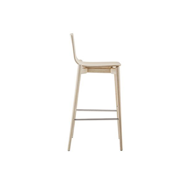 Bar height stool. Wooden seat and back, solid ash wood frame.