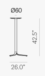 Table base suitable for outdoor use. Steel column with 3 die-cast aluminium legs. Height 42.50″.