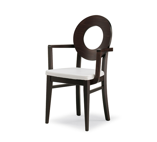 Chaise avec bras. Assise rembourrée et dossier en bois, structure en hêtre fini aniline, laqué ou antique.