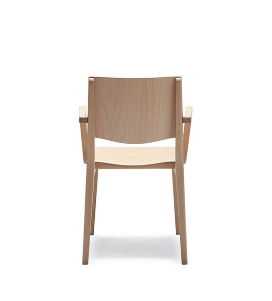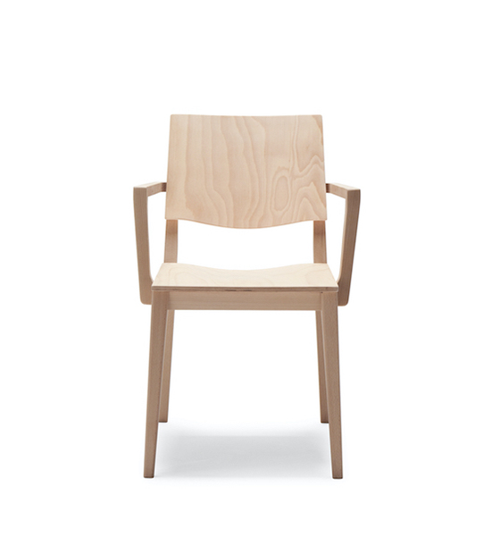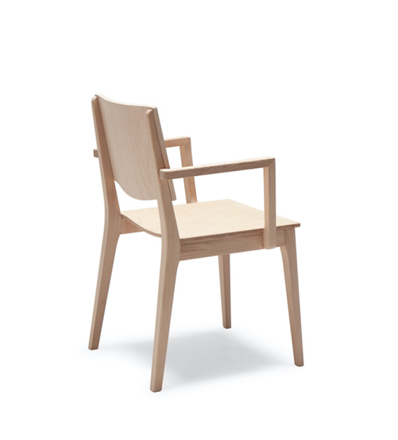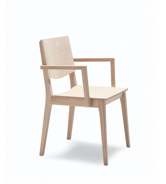 Chaise à bras avec dossier. Assise et pattes en bois d’hêtre.