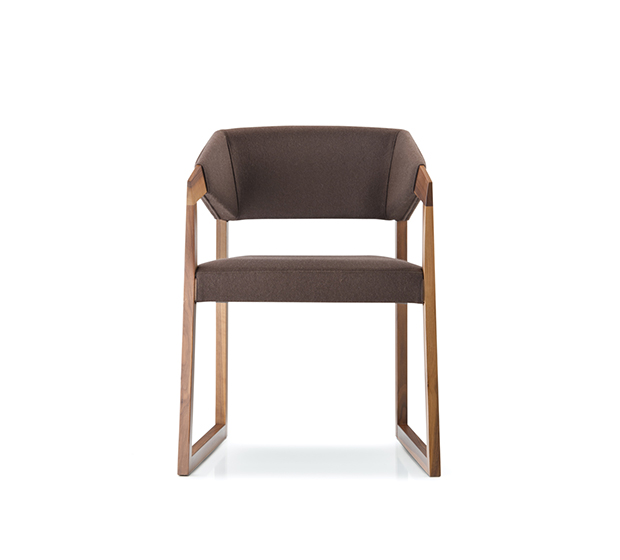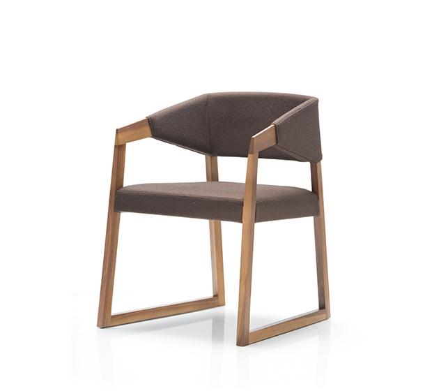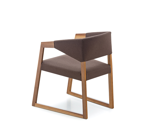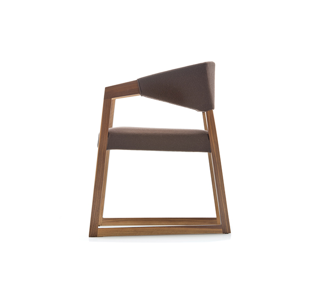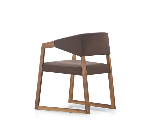 Chaise avec bras. Assise et dossier rembourrés, accoudoirs et structure en chêne massif.