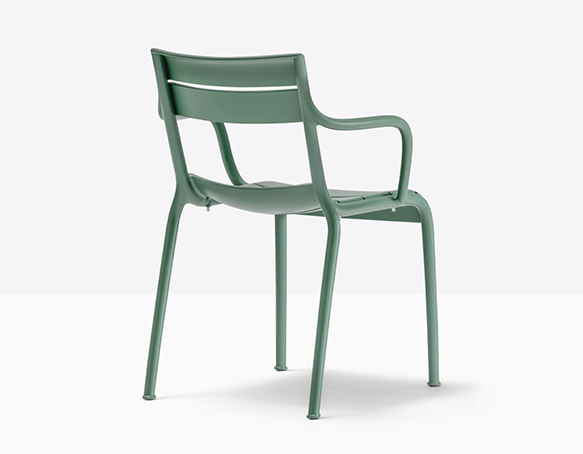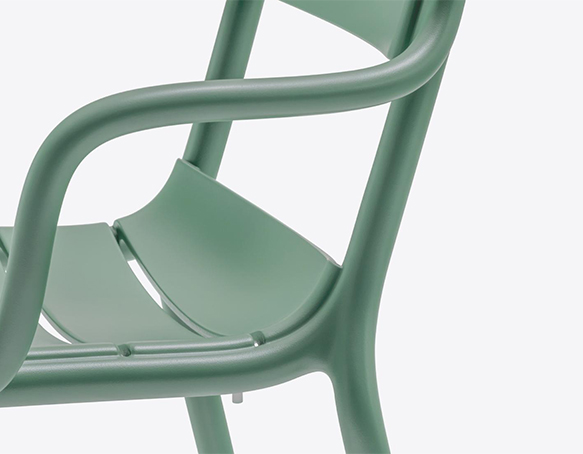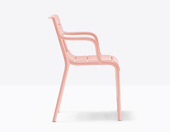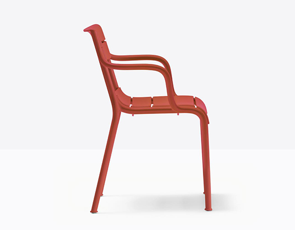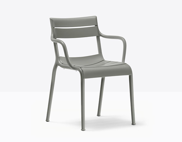 Chaise avec bras, empilable. Entièrement en polypropylène. Adapté à l’usage extérieur. Disponible en polypropylène recyclée (RG).