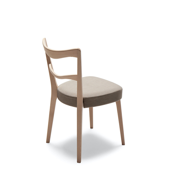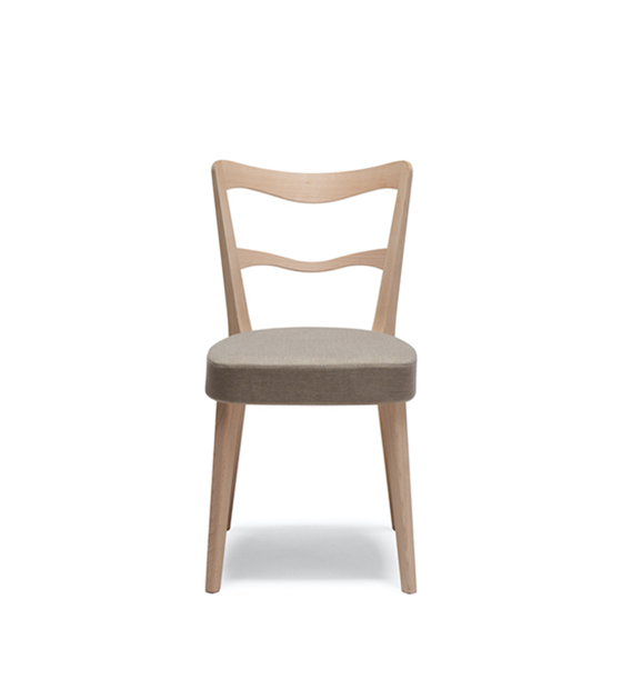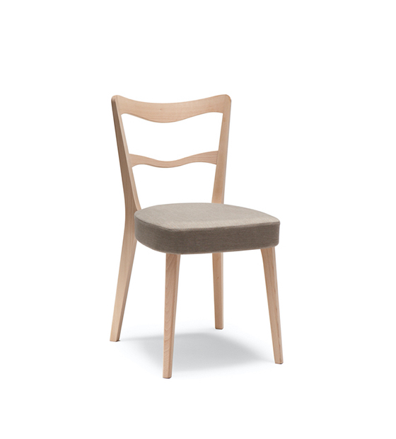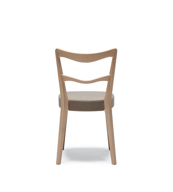 La Eden 121 est une chaise sans bras avec dossier en bois avec fini bois ou laqué et assise rembourrée.