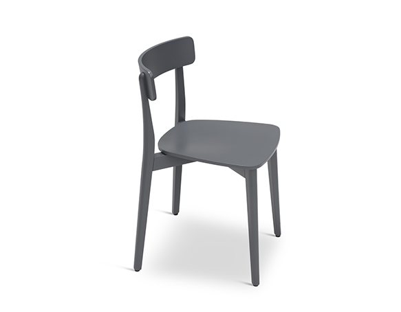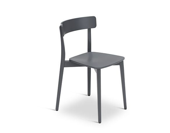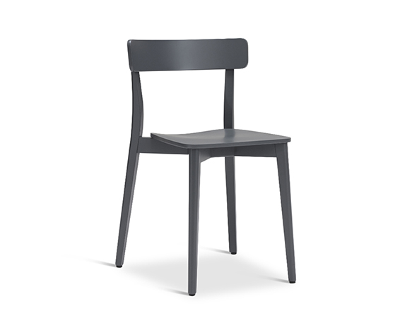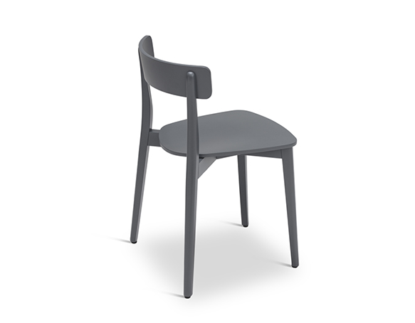 Chaise sans bras, en bois de hêtre ou chêne. Assise en contreplaqué. Disponible en bois teint ou laqué.