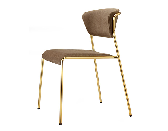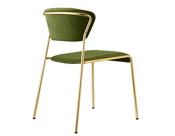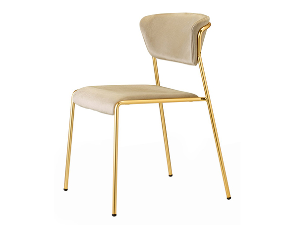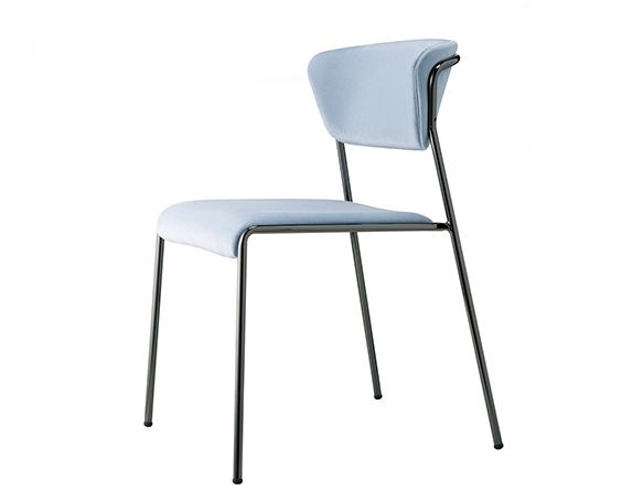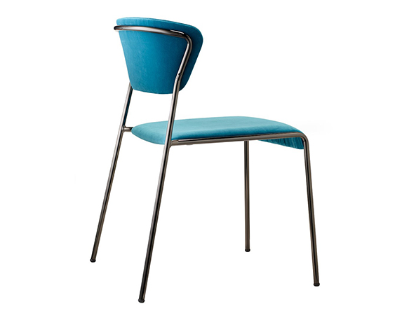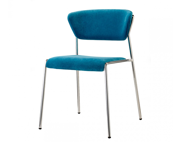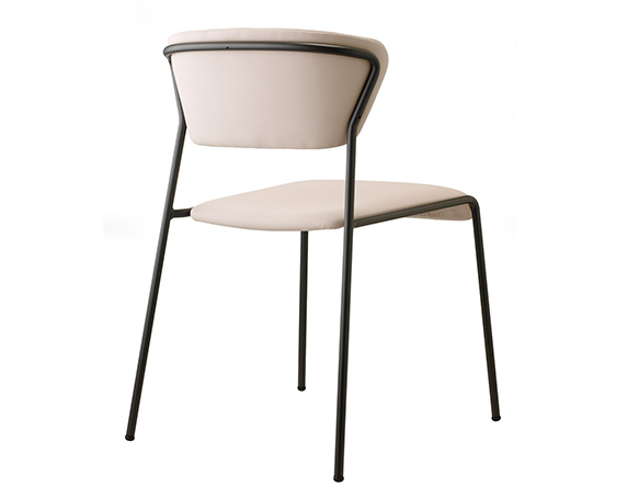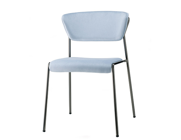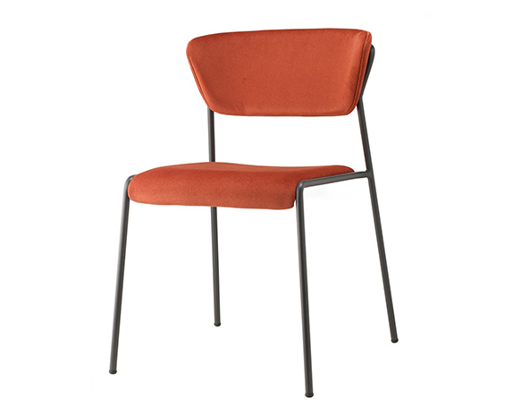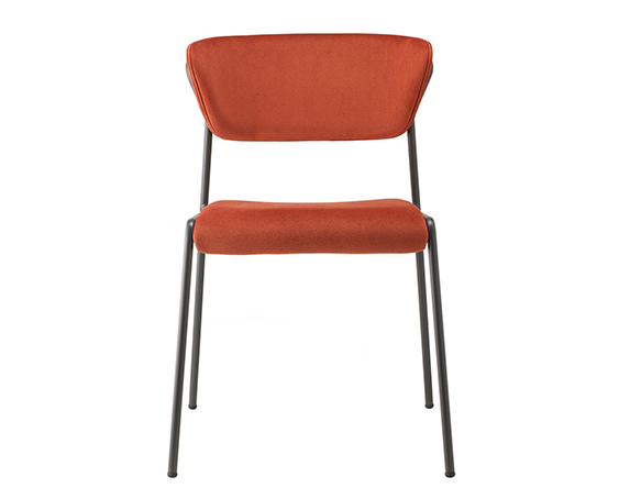 Chaise sans bras, structure en métal. Empilable. Assise et dossier rembourrés.