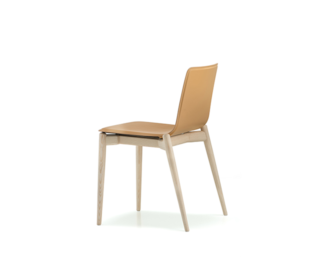 Chaise sans bras. Assise et dossier en cuir, structure en frêne massif.