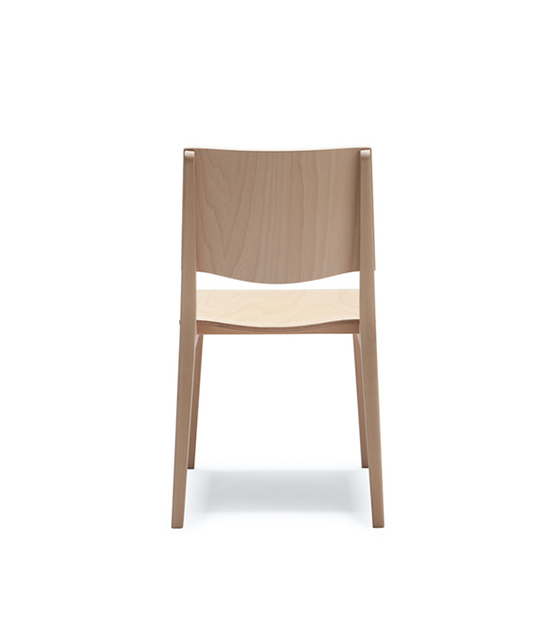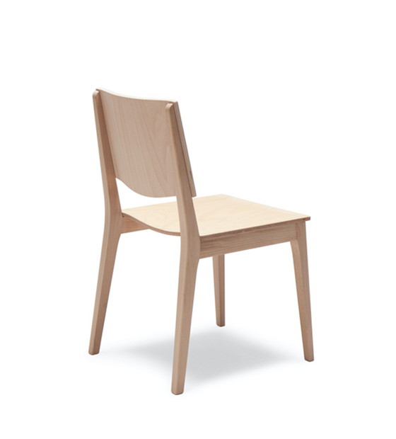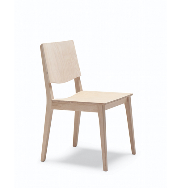 Chaise sans bras. Assise, dossier et quatre pattes en bois d’hêtre.