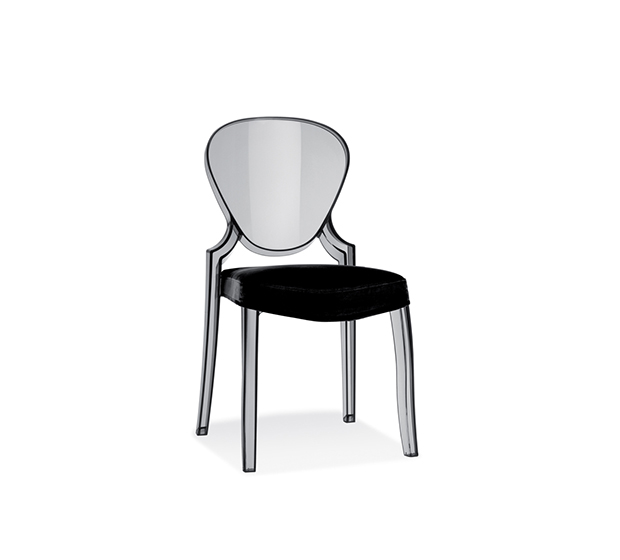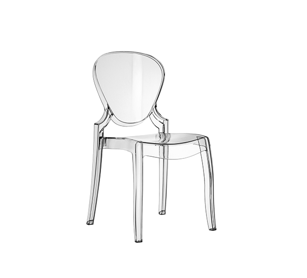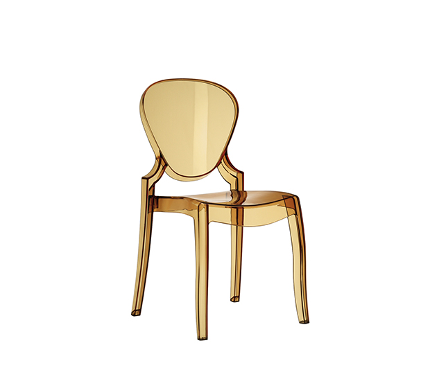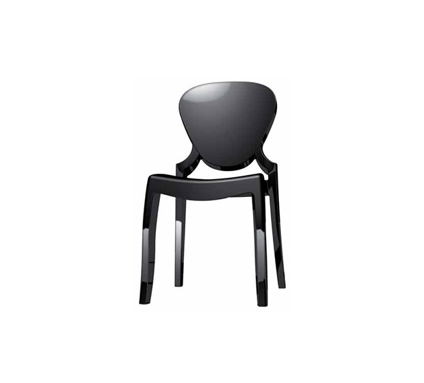 Chaise sans bras, empilable. Fait de polycarbonate. Adapté à l’usage extérieur, sauf pour le polycarbonate noir.