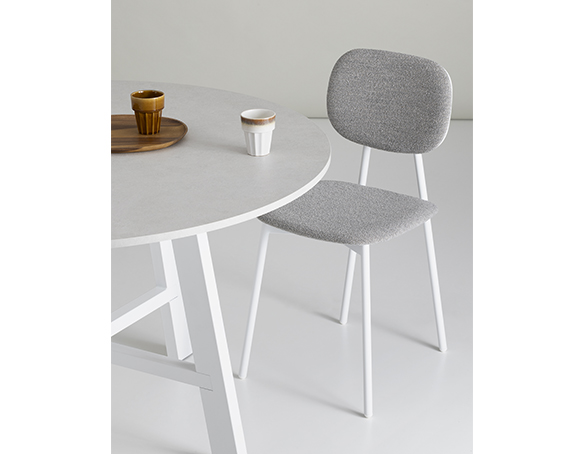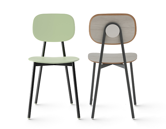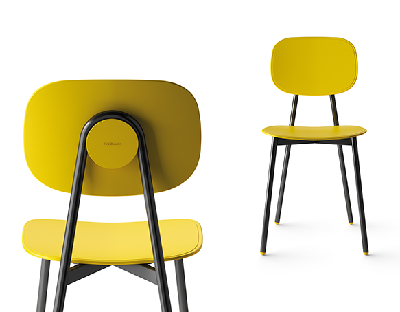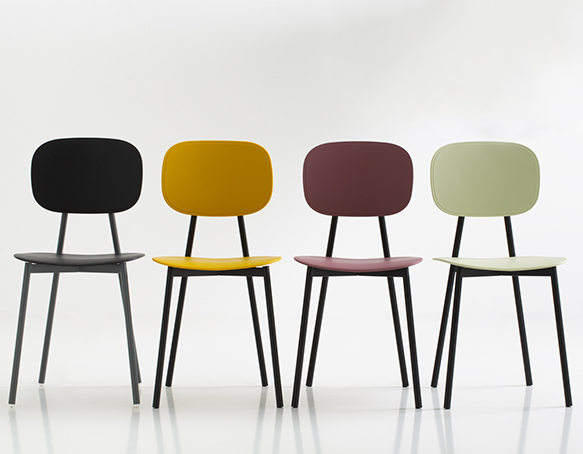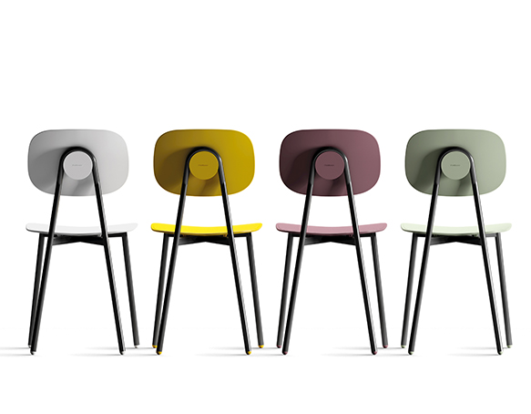 Chaise sans bras. Structure tubulaire en acier peint. Assise et dossier disponible en polypropylène renforcé de fibre de verre, en contreplaqué mélaminé, ou rembourrés. Aussi disponible avec le dossier en polypropylène et l’assise coussinée. Fabriqué en Italie.
