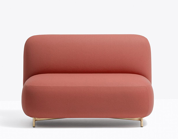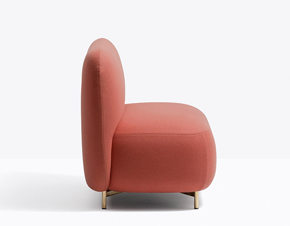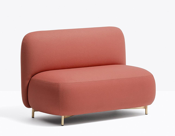 Siège lounge à deux places. Entièrement rembourré, base en aluminium.