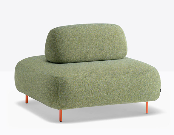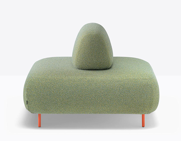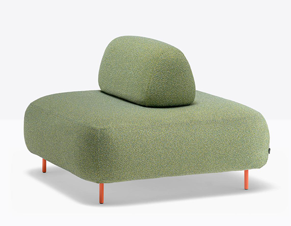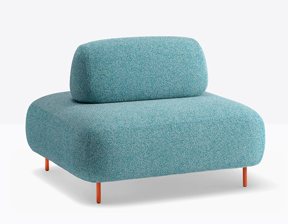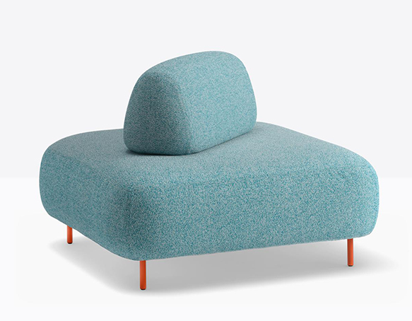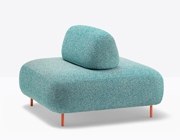Canapé modulable pour l’extérieur. Assise rembourrée en mousse polyuréthane. Dossier mobile en mousse polyuréthane. L’assise et le dossier sont protégés par une housse imperméable et recouverts de tissu pour l’extérieur. Pattes en aluminium.