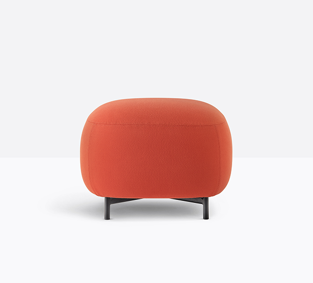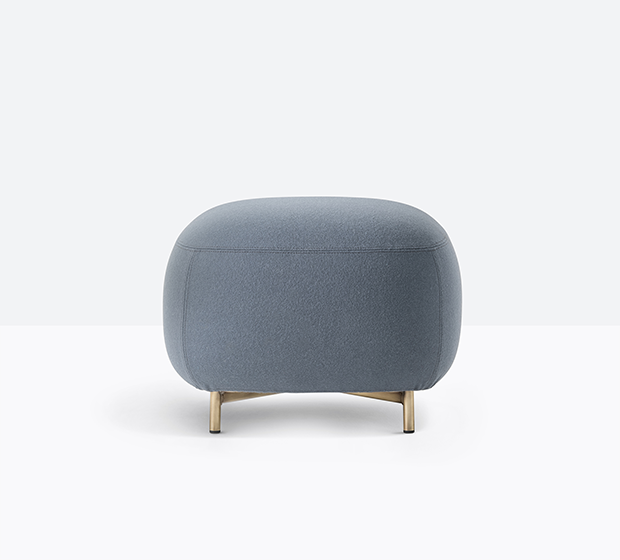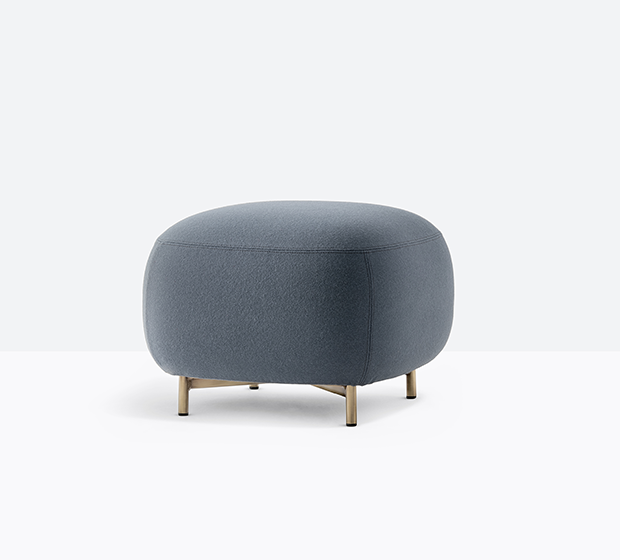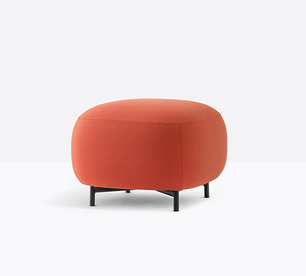 Pouf entièrement rembourré. Pattes en tube d’acier.
