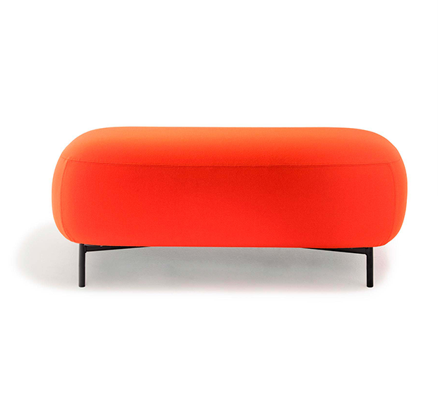 Pouf entièrement rembourré. Pattes en tube d’acier.