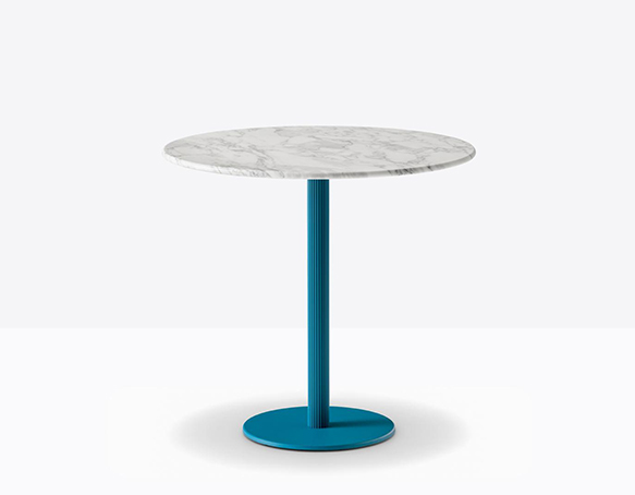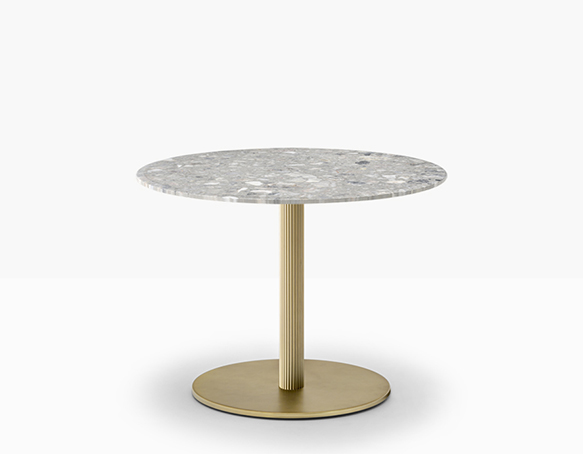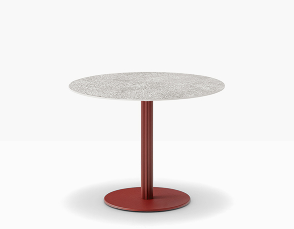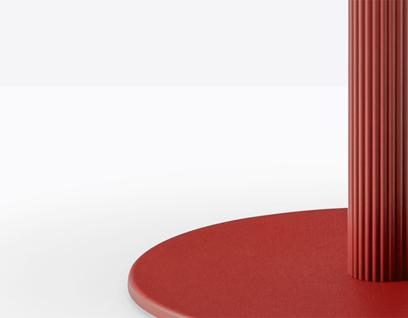 Base de table à colonne centrale ronde striée en aluminium extrudé. Base centrale ronde en fonte ou en acier.