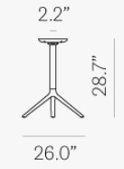 Table avec mécanisme pour plateau rabattable. Base à 3 branches en aluminium moulé sous pression. Hauteur standard 28.70″. Adaptée à l’usage extérieur.