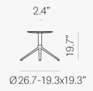 Base de table basse avec piètement à 4 pattes en aluminium moulé sous pression. Hauteur 19.70″. Adaptée à l’usage extérieur.