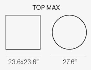 Dimension de plateau : Maximum: Ø27.60″ 23.60″ x 23.60″