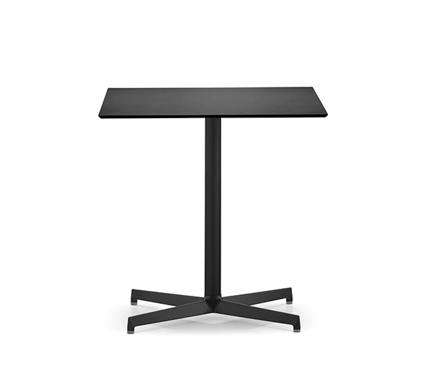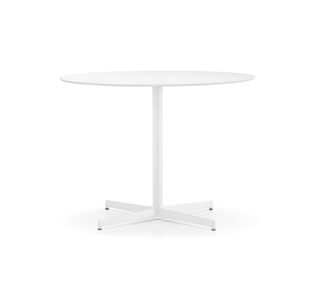 Base de table en aluminium à colonne centrale ronde. Structure à 4 pieds polis ou peints. Hauteur standard. Sous pattes ajustables incluses.