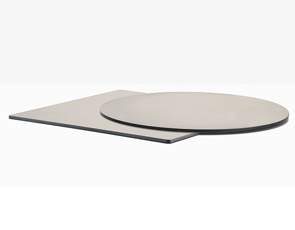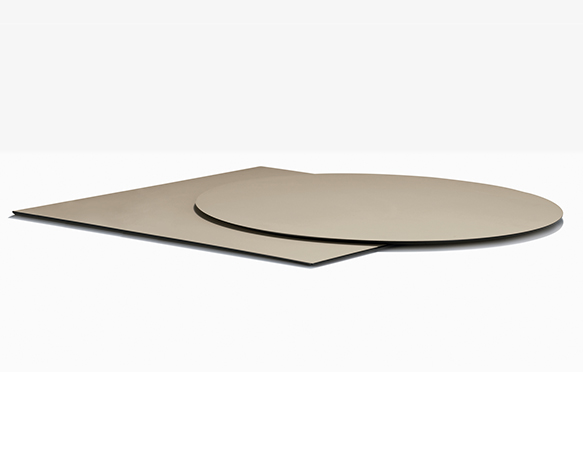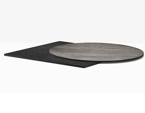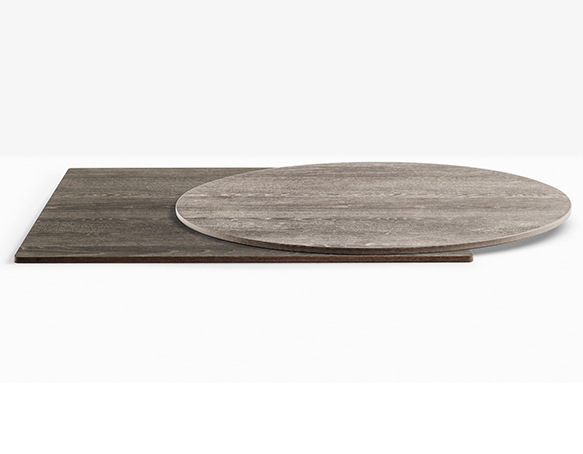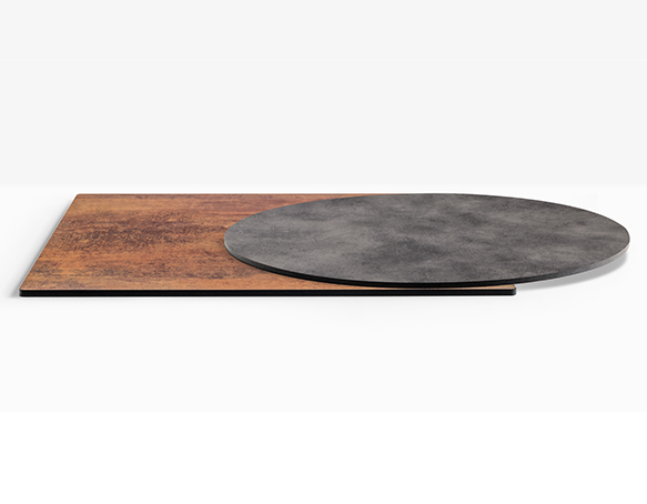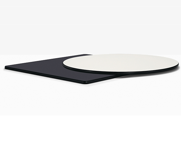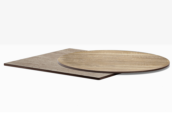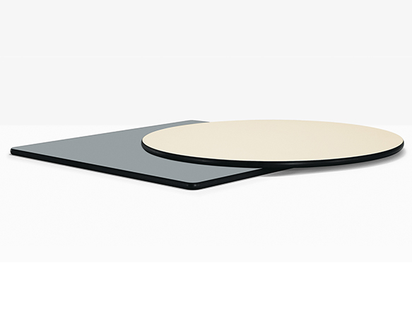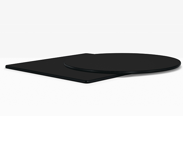 Plateau avec coeur noir ou brun, disponible en différentes formes et tailles. Option de chant plat, arrondi, ou incliné. Deux épaisseurs disponibles: 0.39″ ou 0.47″.