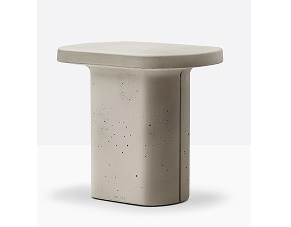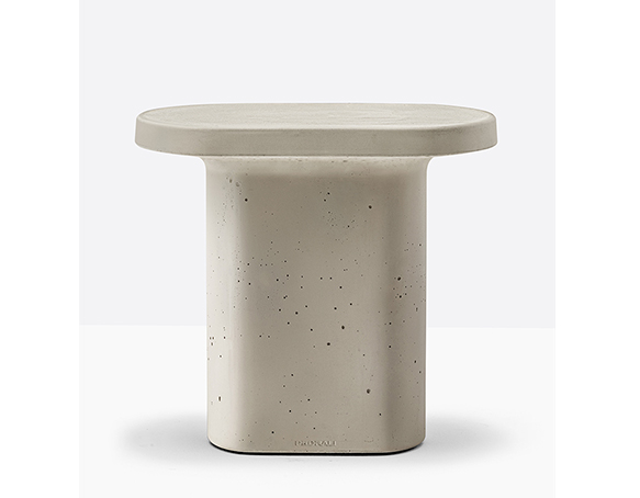 Table basse en ciment à base centrale. Intérieur creux, sous-patte en nylon. Adapté à l’usage extérieur.