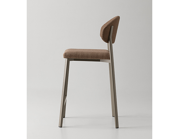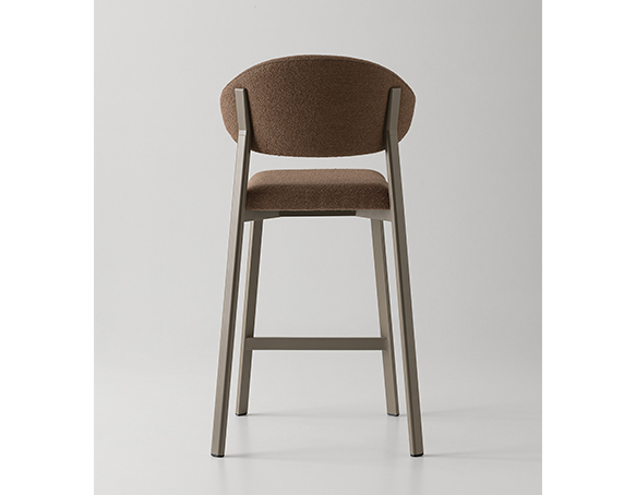 Tabouret hauteur comptoir. Structure en acier peint. Assise et dossier rembourrés. Fabriqué en Italie.